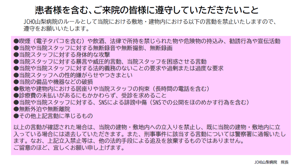 JCHO山梨病院におけるペイシェントハラスメント対応姿勢